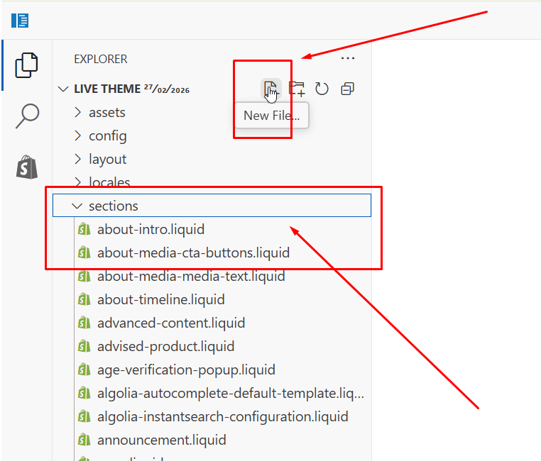 (*)Note: If there is not option “Add a new section", after clicking to open the ‘sections’ folder, you can click on the ‘New File‘ icon" instead: