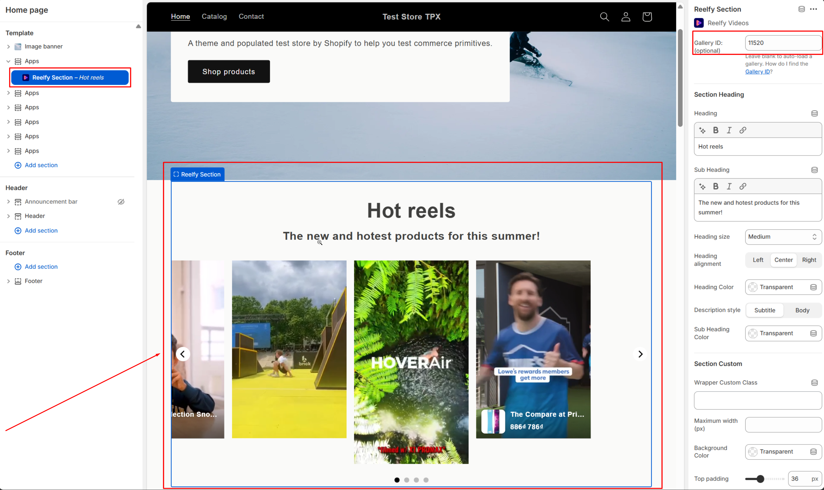 Check the page you are viewing to see if it has a corresponding setup: does it have the correct template; do you input the gallery/widget ID to the Reelfy section/block in its template (if it is required)…