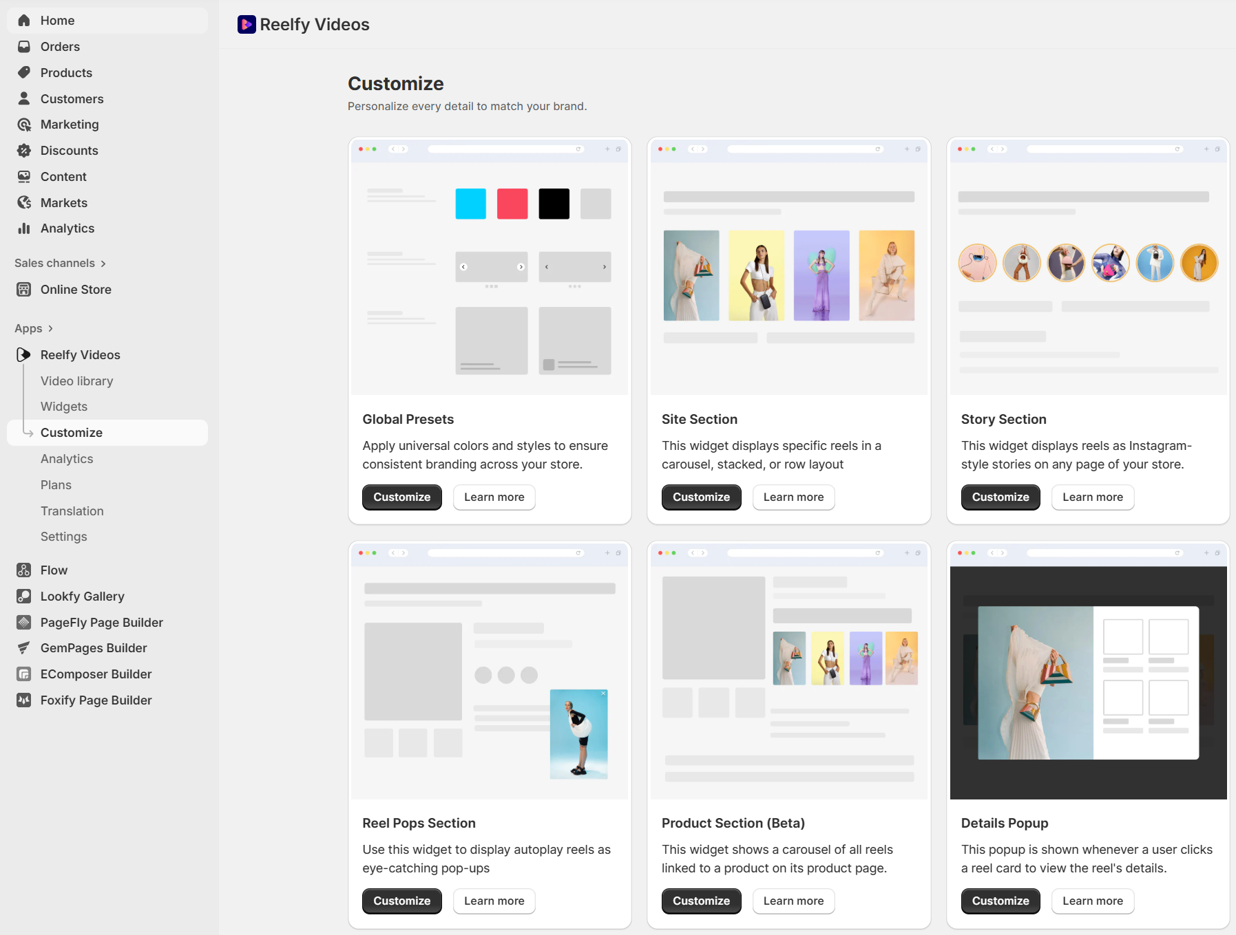 Follow the instructions below to customize the design of Reelfy section to fit your store’s layout.